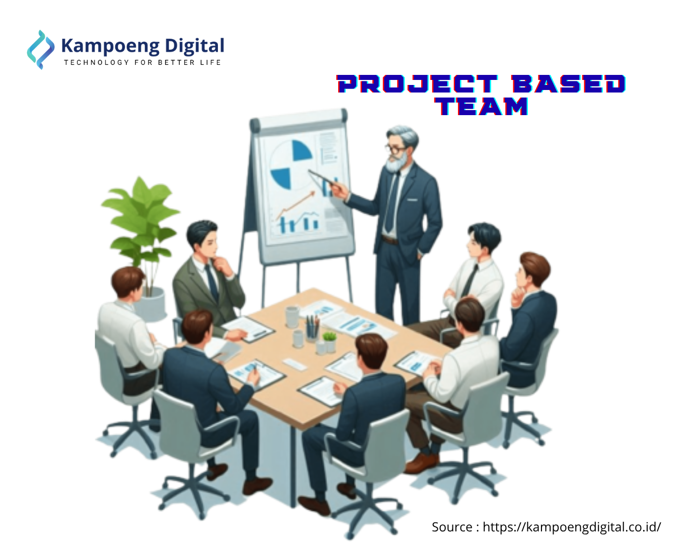 Model hybrid menggabungkan kelebihan dari dedicated team dan project-based.